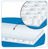 AKYPRINT Polypropylénová doska s plástovou štruktúrou vhodná na digitálnu tlač (sieťotlač). Dosky AKYPRINT sú trojvrstvové polypropylénové dosky s plástovou štruktúrou. Prostredná vrstva je tvarovaná, tepelno-izolačná, obe vonkajšie vrstvy sú rovné.