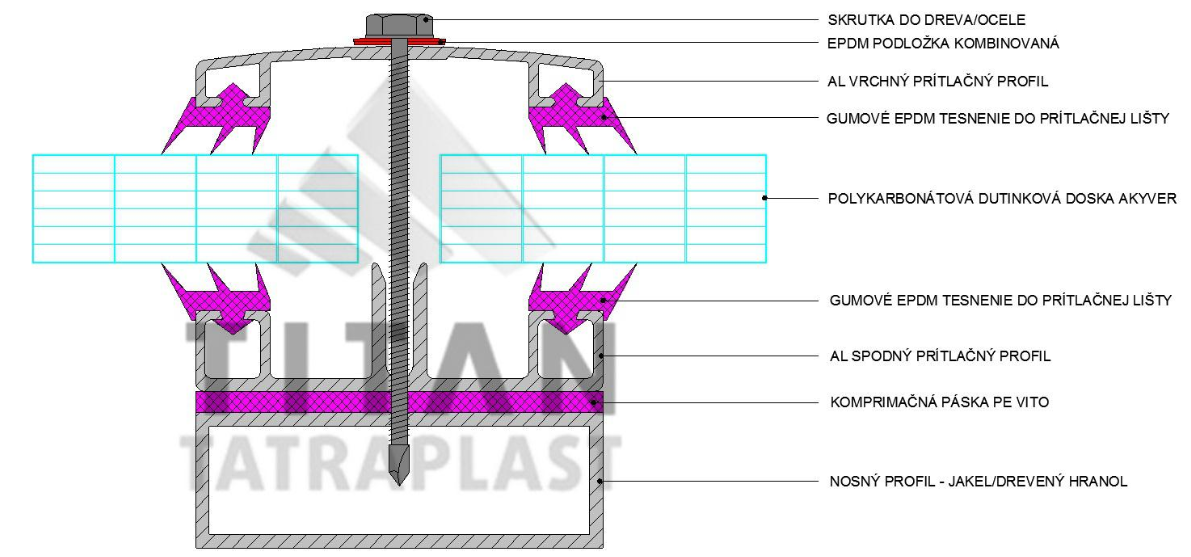 Hliníkový spodný profil Standard sa používa pri spájaní dutinkových, plných polykarbonátových dosiek, skla, plexiskla i iných materiálov v kombinácii s Vrchný Prítlačným Al profilom Standard. Po stranách je opatraný drážkami na EPDM tesnenie, cez ktoré sa pritlačí spájana doska a lišta tak dovoľuje pohyb materiálu v dôsledku dilatácii. Tesnenie ďalej zabezpečí vytesnenie plochy (zamädzenie zatekania), odstráni sa tepelný most medzi lištou a materiálom (miesto styku sa nerosí). Spojenie oboch líšt vlastne vytvorí H-profil. Lišty vytvoria vodotesný H-profil zoskrutkovaním.