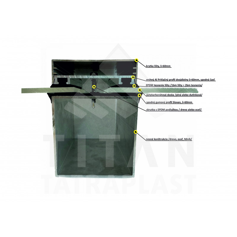 Vrchný hliníkový prítlačný profil dvojdielny š=60mm: