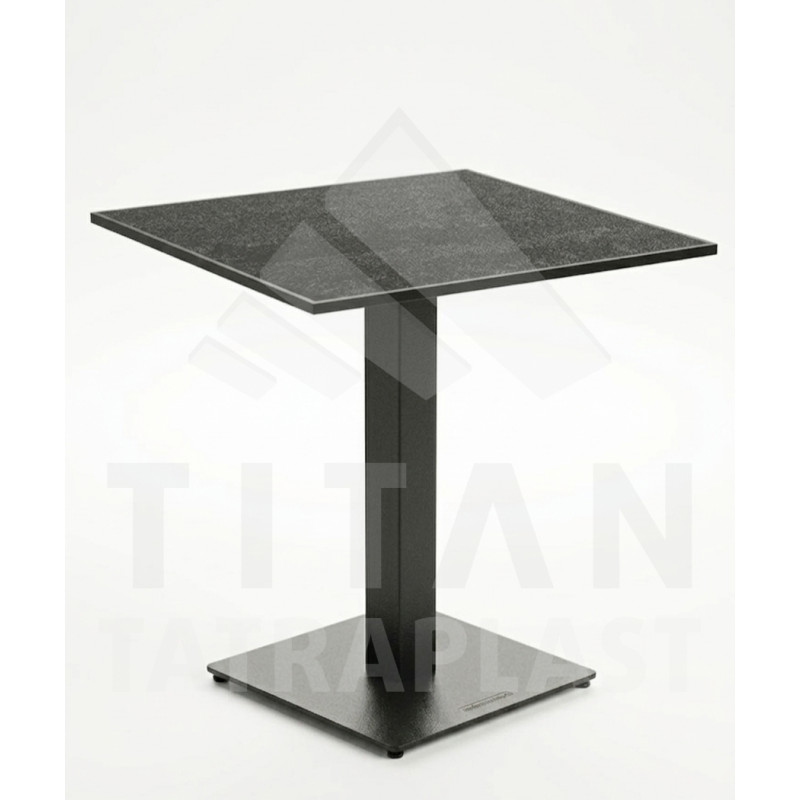 Stoly sú vyrobené z kompaktných dosiek s čiernym jadrom (čierne hrany), masívnej oceľovej podnože, ktorá zabezpečuje vysokú stabilitu a industriálny, modrený vzhľad.
