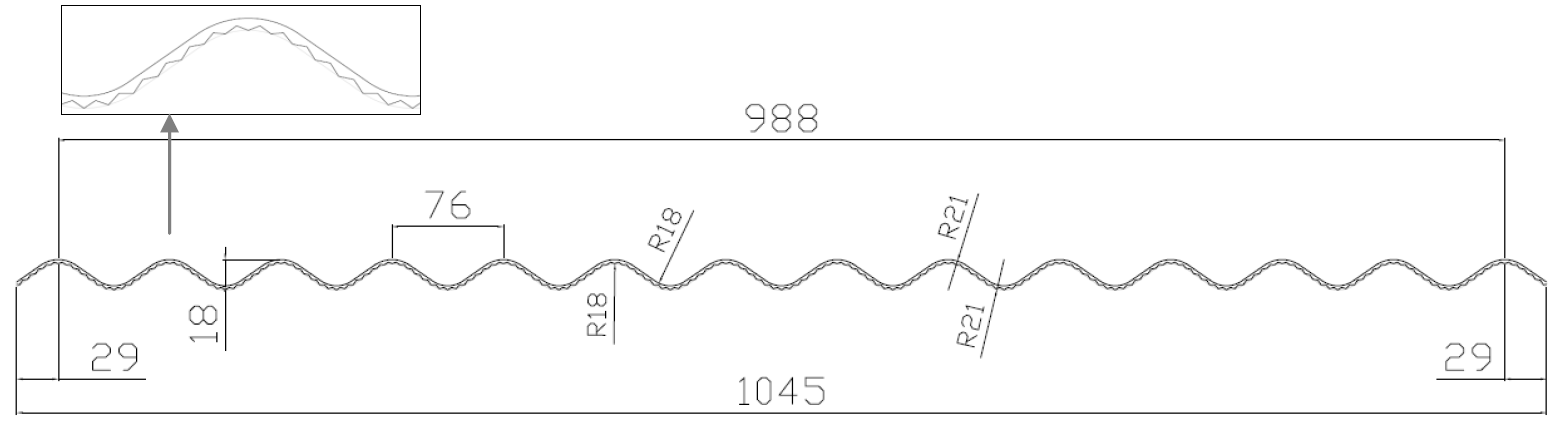 Je to plná polykarbonátová doska s jednostrannou koextrúdovanou UV ochranou. Rozmer vlnovky 76/18 (osová vzdialenosť vlny 76mm, výška vlny 18mm), hrúbkou materiálu 2,8mm, ktorá ma široké možnosti využitia.